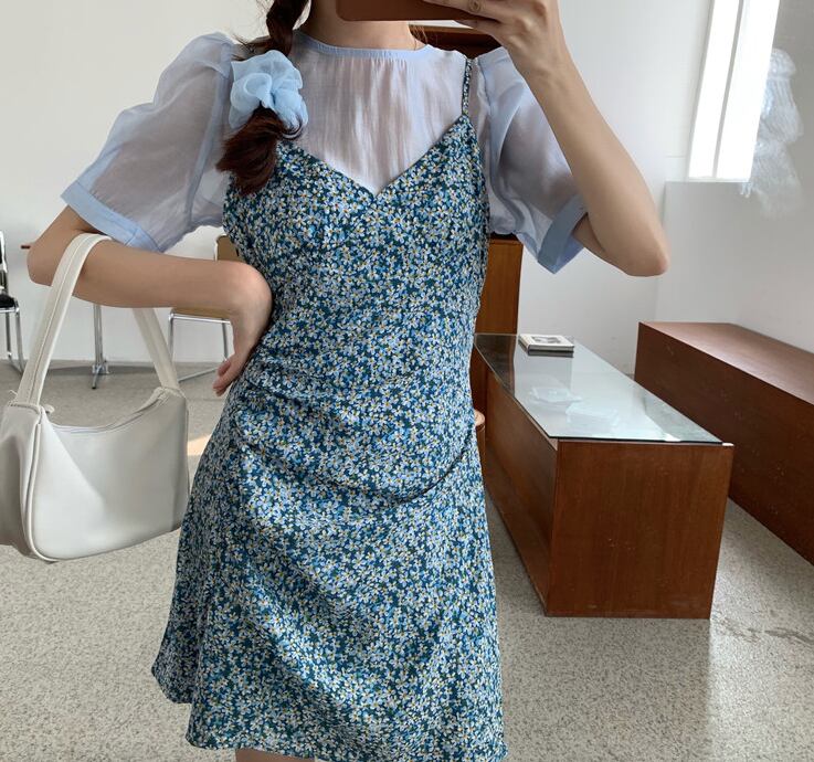 透け感が可愛いインナーと小花柄のツーピースセット